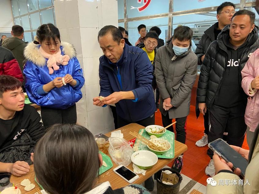 体教三班当然也是旗鼓相当,一帮美女,帅哥们在李森副书记的亲自指导下,齐心协力的包出非常完美的饺子!同样这也少不了老师的示范与讲解!